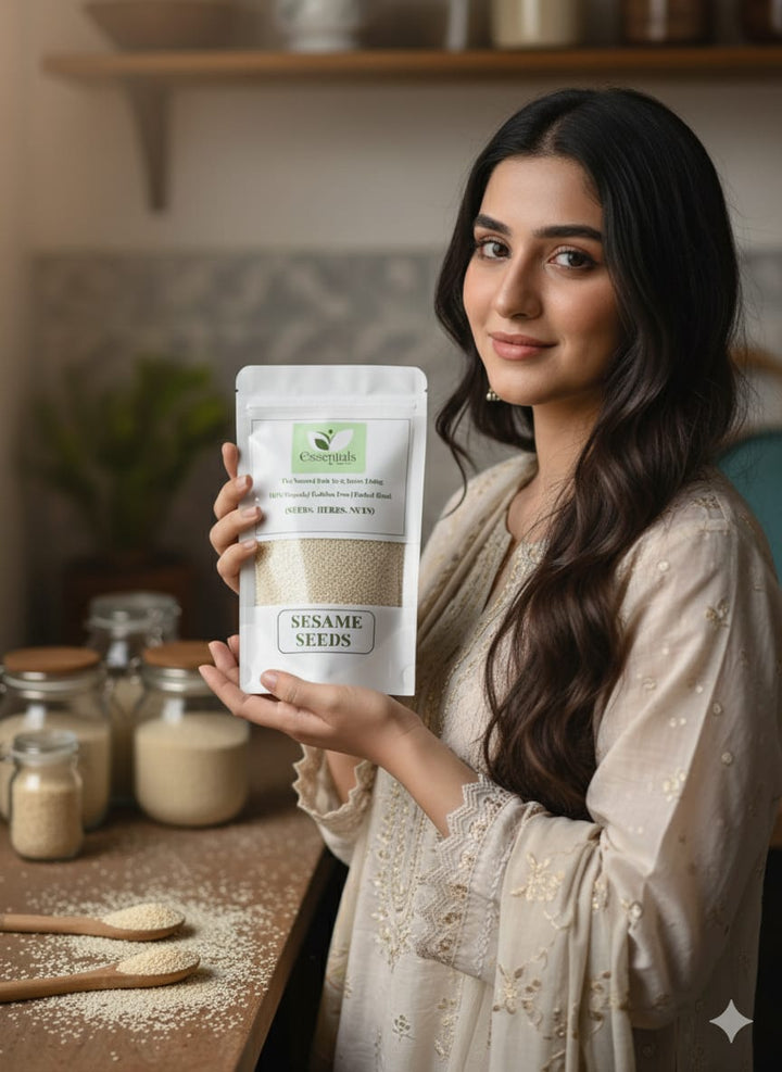 Add a touch of nutrition and crunch to your meals with Essentials by Abiha Sesame Seeds ✨. These tiny seeds are loaded with calcium, iron, protein, and healthy fats, making them a superfood for stronger bones, improved digestion, and overall well-being.