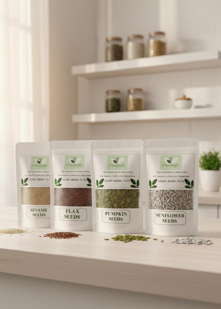 Apni daily diet me health aur nutrition ka perfect touch add karein hamare 4 Premium Super Seeds Combo ke sath. Yeh combo specially un logon ke liye design kiya gaya hai jo healthy lifestyle aur natural nutrition ko prefer karte hain.